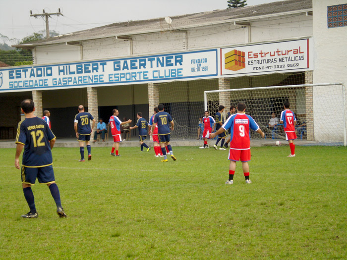 A visita desse fim de semana foi em Gaspar, onde tive o privilégio se assistir uma ótima partida de futebol veterano entre essas duas equipes amigas e disciplinadas tanto dentro quanto fora das quatro linhas. O pessoal do Sênior ficou chateado com o resultado e não poderia ser diferente, mas podem ter a certeza que realizaram um ótimo jogo, pois até os 25 minutos da 2ª etapa estava equilibradíssima a partida, com o placar mostrando bem isso, 3 X 3. A equipe Colorada saiu na frente no marcador, o Sênior empatou e novamente os Colorados ficaram em vantagem, o Sênior voltou a empatar e conseguiu a virada, fazendo os visitantes correrem atrás do resultado e foi o que aconteceu. A partir daí o jogo ficou emocionante, com as duas equipes em busca da vitória. A equipe do E. C. Colorado imprimiu um ritmo muito rápido, seus jogadores eram muito velozes, incansáveis, correram até o último minuto, além de serem bastante entrosados, trabalharam bem a bola e conseguiram fazer o placar acontecer naturalmente, jogaram com lealdade e respeito, proporcionando um grande espetáculo para quem assistiu.